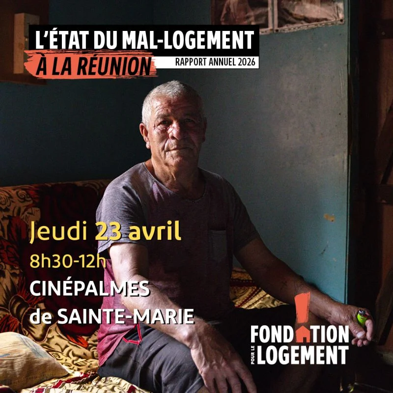 Evènement le jeudi 23 avril, la Fondation pour le Logement des Défavorisés présentera son nouvel éclairage sur l’état du mal-logement la Réunion.
