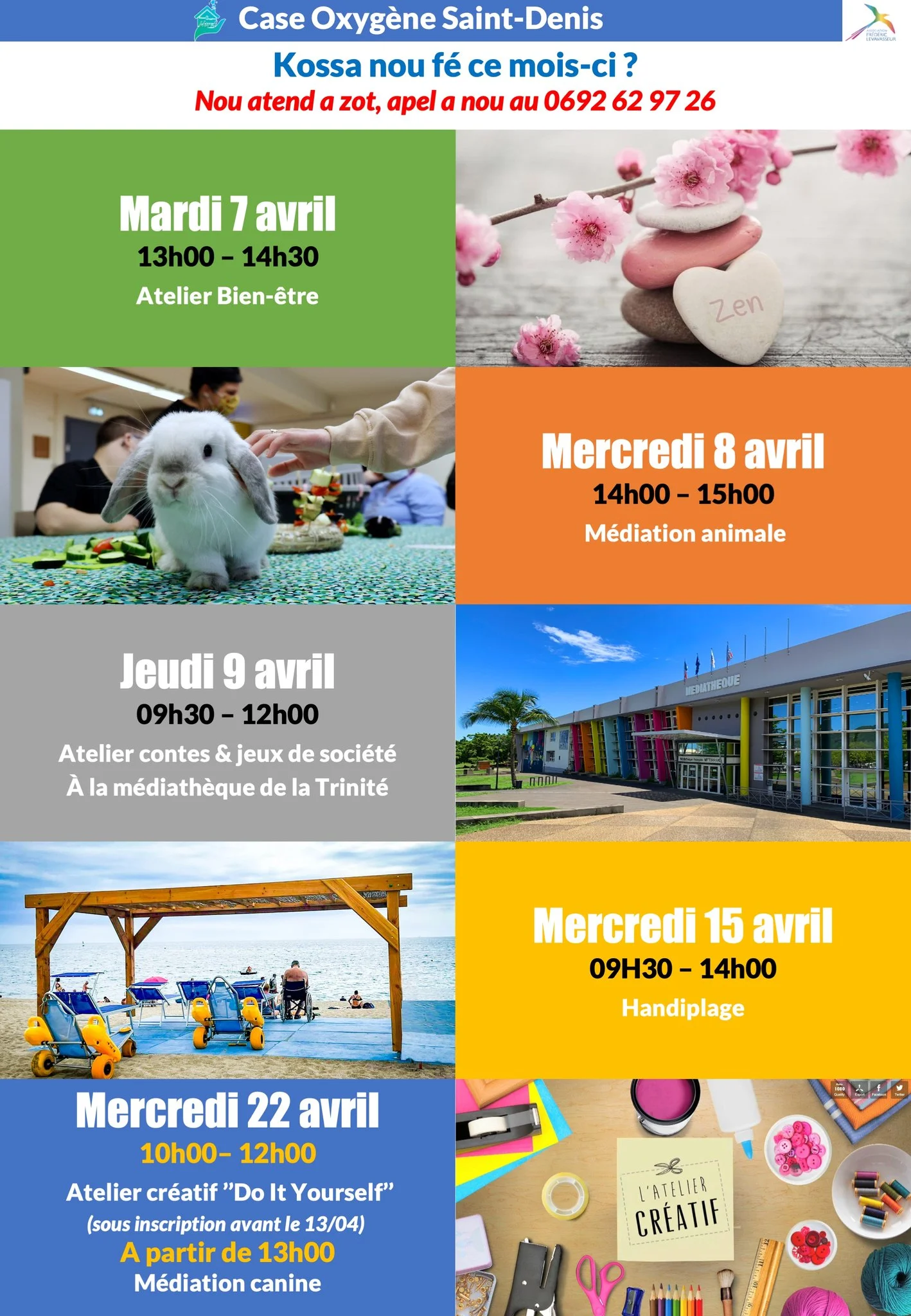 En avril, la Case Oxygène Saint-Denis vous propose un mois riche en bien-être, médiation animale, sorties, ateliers créatifs et moments conviviaux pour se rencontrer, échanger et profiter ensemble.